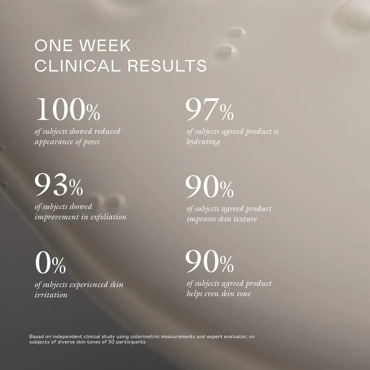- 90% of subjects agreed product helps even skin tone