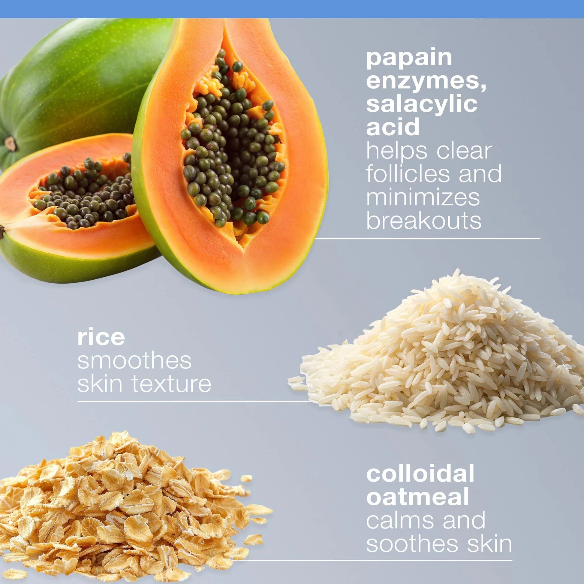 - Papain Enzymes and Salicylic Acid: Draw out excess oil, clear clogged pores, and smooth the skin.