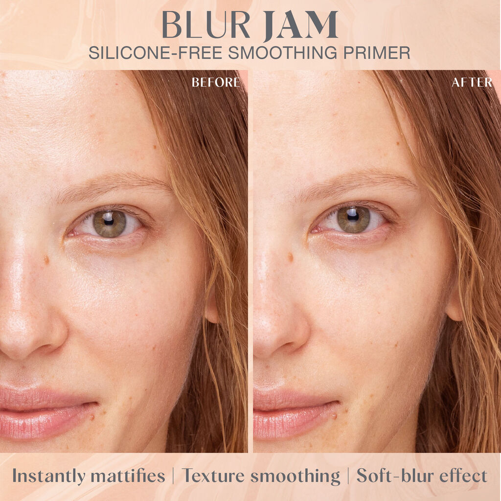 The Glowish Blur Jam Silicone‑Free Smoothing Primer from Huda Beauty is a water‑based smoothing primer that instantly blurs pores and refines skin texture with a lightweight, breathable veil. Enriched with Damascus rose water, prickly pear and cactus flower extracts, it hydrates, soothes, and maintains the skin barrier, while delivering up to 12 hours of matte, soft‑focus wear. The gel‑cream has a cooling, jam‑like texture that dries down to a natural, filter‑effect finish—ideal for oily, combination, or sensitive skin.