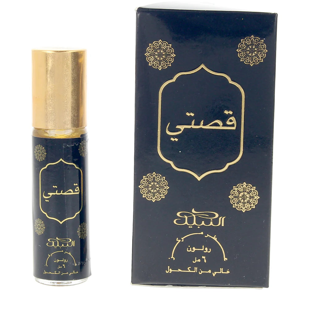 Nabeel Qisaty is a luxurious unisex fragrance that blends rich, woody notes with floral and spicy accents. This alcohol-free perfume opens with top notes of lavandin, copaiba balsam, honey, ylang-ylang, aldehydes, orange, and anise, creating a vibrant and aromatic introduction. The heart reveals a complex blend of geranium, jasmine, rose, cedar, guaiac wood, coconut, peach, raspberry, and cypriol oil (nagarmotha), adding depth and intrigue. The base notes of sandalwood, patchouli, musk, vanilla, and oud provide a warm, earthy foundation that lingers on the skin. Packaged in a convenient 6ml roll-on format, this fragrance is perfect for on-the-go application and travel.