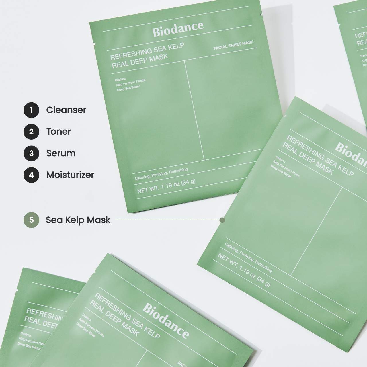 Refreshing Sea Kelp Real Deep Mask - 4 pack for Calming & Sebum Control