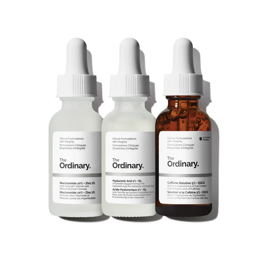 A mini gift set featuring three of The Ordinary’s most popular serums in travel‑size bottles. Designed to brighten, hydrate and depuff the skin with essentials for a simple, effective skincare routine.