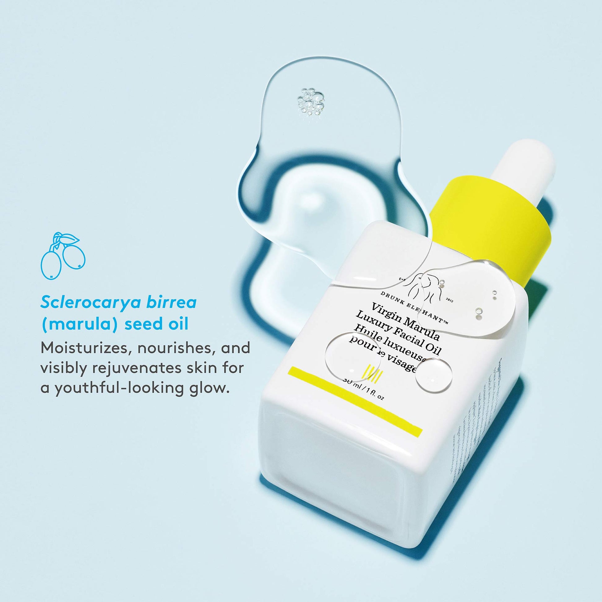 Drunk Elephant is committed to using only ingredients that either directly benefit the health of the skin or support the integrity of their formulations. The brand focuses on healthy pH levels, formulations the skin recognizes, small molecular structure that’s easily absorbed, and effective active ingredients that also support the skin’s acid mantle. All of their products are designed to be mixed together—what Drunk Elephant calls making a smoothie. (This is true for all of their products except their sunscreen, Umbra, which sits on top of the skin, protecting it from UV damage.) The result is skin that is reset to its happiest, healthiest state.